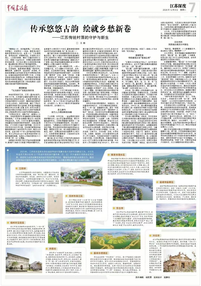 2024年,江苏省完善传统营建技艺标准体系、积极培育古建产业的经验做法被列入住房城乡建设部《传统村落保护利用可复制经验清单(第二批)》。