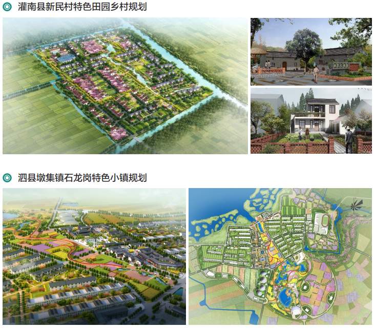 近年来在村镇规划方面主要业绩有:《贵州省传统村落消防研究》(2017 年度江苏省优秀工程咨询成果二等奖)、《灌南县新民村特色田园乡村建设规划》 (2018 年度江苏省城乡建设系统优秀勘察设计二等奖)、《泰州市俞垛镇叶甸村传统村落保护规划》《泗县墩集镇石龙岗特色小镇规划》《昆山市淀山 湖镇总体规划》等。