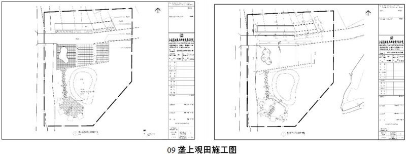 垄上观田节点位于村庄南侧临田处,现状道路将场地划分为南北两侧空间,北侧空间高差近3米,设计结合现状地形高差,利用乡土块石设置退台式坐凳解决场地高差,同时保留场地中的香樟树,围绕大树设置乡土坐凳,为村民提供日常观景休闲场所;南侧空间较为平坦,利用河滩石围合成舒适的休闲空间,场地中心设置竹编茅草亭、乡土坐凳等休闲设施,为村民提供日常纳凉、交流场所。